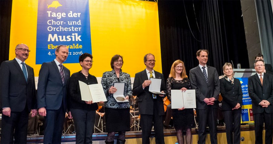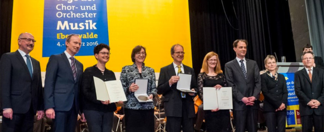 Im Rahmen der Eberswalder Tage der Chor- und Orchestermusik wurde der Lichterfelder Johanneskantorei am Sonntag, 6. März 2016 eine besondere Ehre zuteil: Bettina Heuer-Uharek, Kantorin und Irmgard Reihlen, Vorsitzende des Gemeindekirchenrates nahmen während des zentralen Festaktes die vom Bundespräsidenten gestiftete erste Zelter-Plakette dieses Jahres stellvertretend für alle weiteren Chöre entgegen. Überreicht wurde die Auszeichnung von Sabine Kunst, Ministerin für Wissenschaft, Forschung und Kultur des Landes Brandenburg, in Vertretung des Bundespräsidenten.